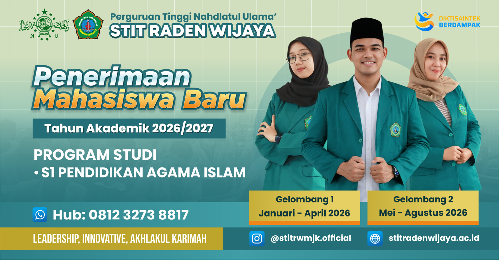 STIT Raden Wijaya Mojokerto berada di bawah naungan Nahdlatul Ulama, organisasi Islam terbesar di Indonesia. Kami mendidik mahasiswa bedasarkan nilai-nilai Islam yang rahmatan lil alamin, moderat, toleran, dan berakar kuat pada tradisi keilmuan pesantren. STIT Raden Wijaya Mojokerto bukan hanya mencetak sarjana, tapi membentuk cendekiawan muslim yang berakhlak karimah.