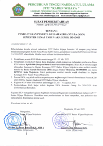Diberitahukan kepada seluruh mahasiswa STIT Raden Wijaya Semester VI maupun yang belum melaksanakan program Kuliah Kerja Nyata (KKN) bahwa, pendaftaran kegiatan KKN Semester Genap TA