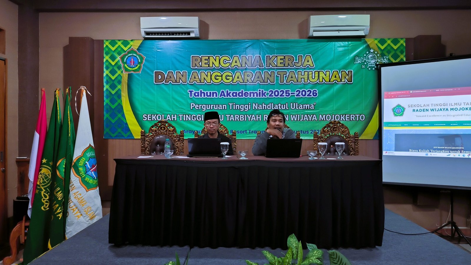 STIT Raden Wijaya, Kab. Mojokerto — Sekolah Tinggi Ilmu Tarbiyah (STIT) Raden Wijaya Mojokerto menyelenggarakan Rapat Kerja dan Anggaran Tahunan (RKAT) di Arayana Hotel & Resort, Trawas, Kab. Mojokerto pada 30–31 Agustus 2025 lalu. Kegiatan strategis tahunan ini diikuti oleh jajaran struktural, dosen, tenaga kependidikan, perwakilan Badan Penyelenggara Pelaksana Perguruan Tinggi Nahdlatul Ulama (BP3TNU) Kota Mojokerto dan Pengurus Cabang Nahdlatul Ulama (PCNU) Kota Mojokerto.